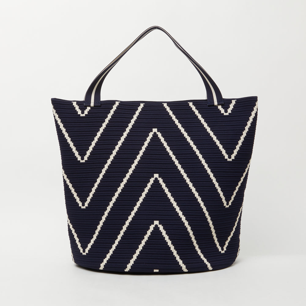 By combining yarn made from carefully decomposed plastic bottles with 3D knitting technology, we produce bags without additional waste.
